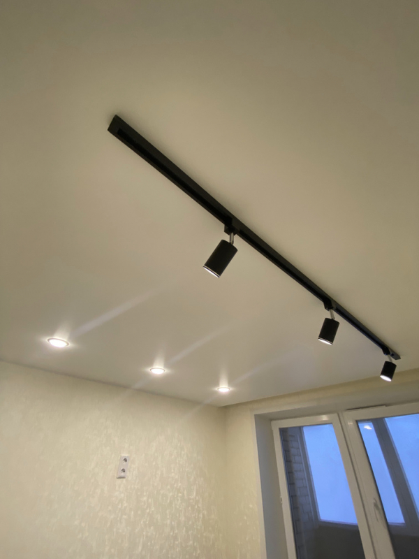Цена матового потолка 16 м² с бесщелевым профилем и люстрой